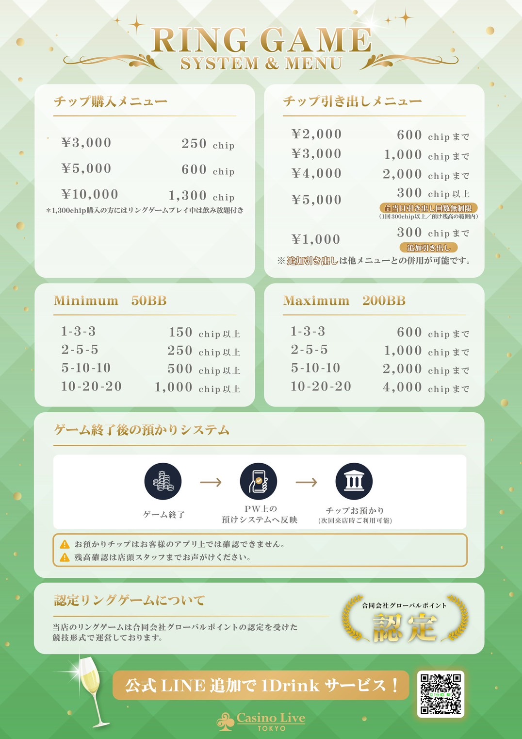 Casino Live Tokyoでは、ポーカーをはじめ、以下のゲームをお楽しみいただけます。
