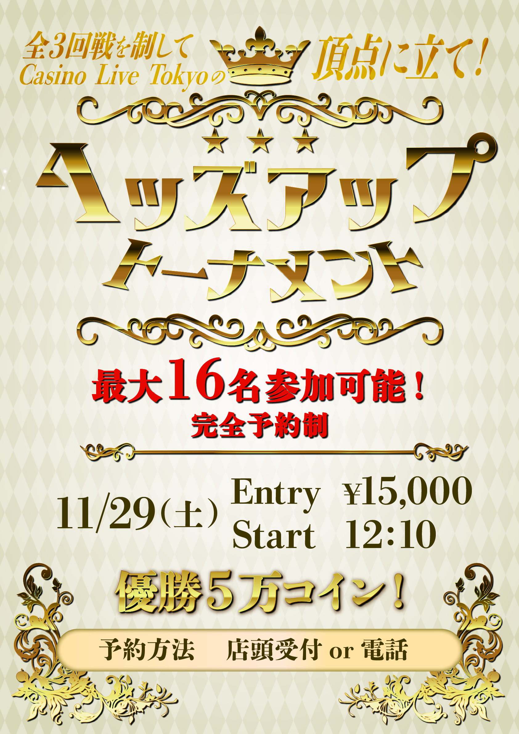 Casino Live Tokyo » Information » 11/29 ヘッズアップトーナメント開催決定!